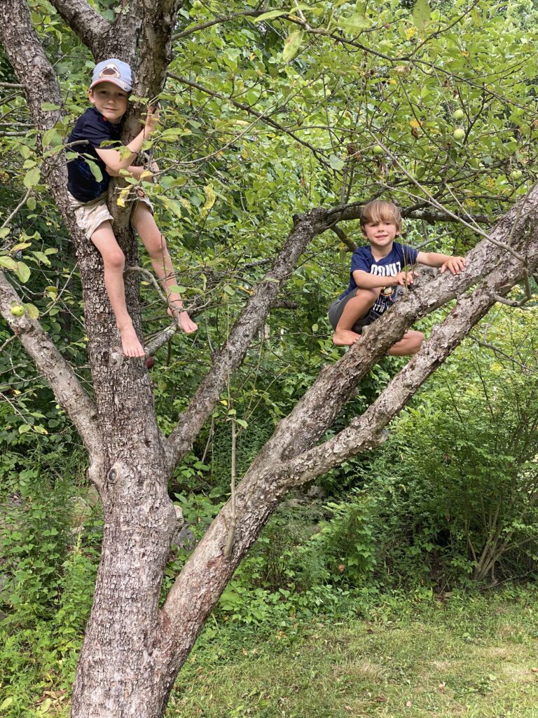 In the Orchard Pediatric Physical Therapy, LLC is a pediatric physical therapy clinic serving children and families in the greater capital area and lakes region. Located on 5+ acres of land owned by Caley and her husband John, it provides the perfect opportunity for children to build their confidence and improve their ability to independently engage with a natural learning environment. Caley grew up here, ultimately purchasing the property from her parents in 2018—bringing something new and special to the property has been the most exciting experience. The new construction, stand alone clinic was finished in January of 2023 and the outdoor treatment space is located on Caley’s favorite spot on the property. The focal point of the outdoor space is a lovingly constructed cedar playground built around a grove of maple trees that provide beautiful canopied shade during the hotter months and splendid color during the fall. She enjoys the spot so much, she’s planning on tucking a patio in against one of the stone walls so that parents can also enjoy the space as their children learn and play.